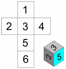 Here you can see the surface of a cube in its "unfolded" form (called a net of a cube) and also its "folded into a cube" form.