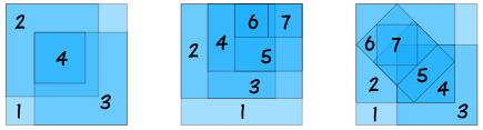 The numbers in the diagrams show the order of the squares, from the bottom (1) to the top.
